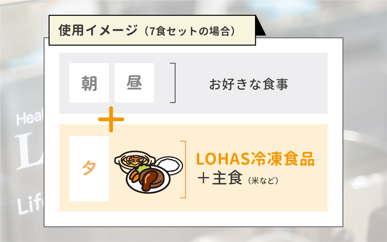 逆に言えば2食はお好きなものを適度にお召し上がりいただき、不足しがちな栄養素をLOHAS冷凍食品でカバーする…というイメージでしょうか。