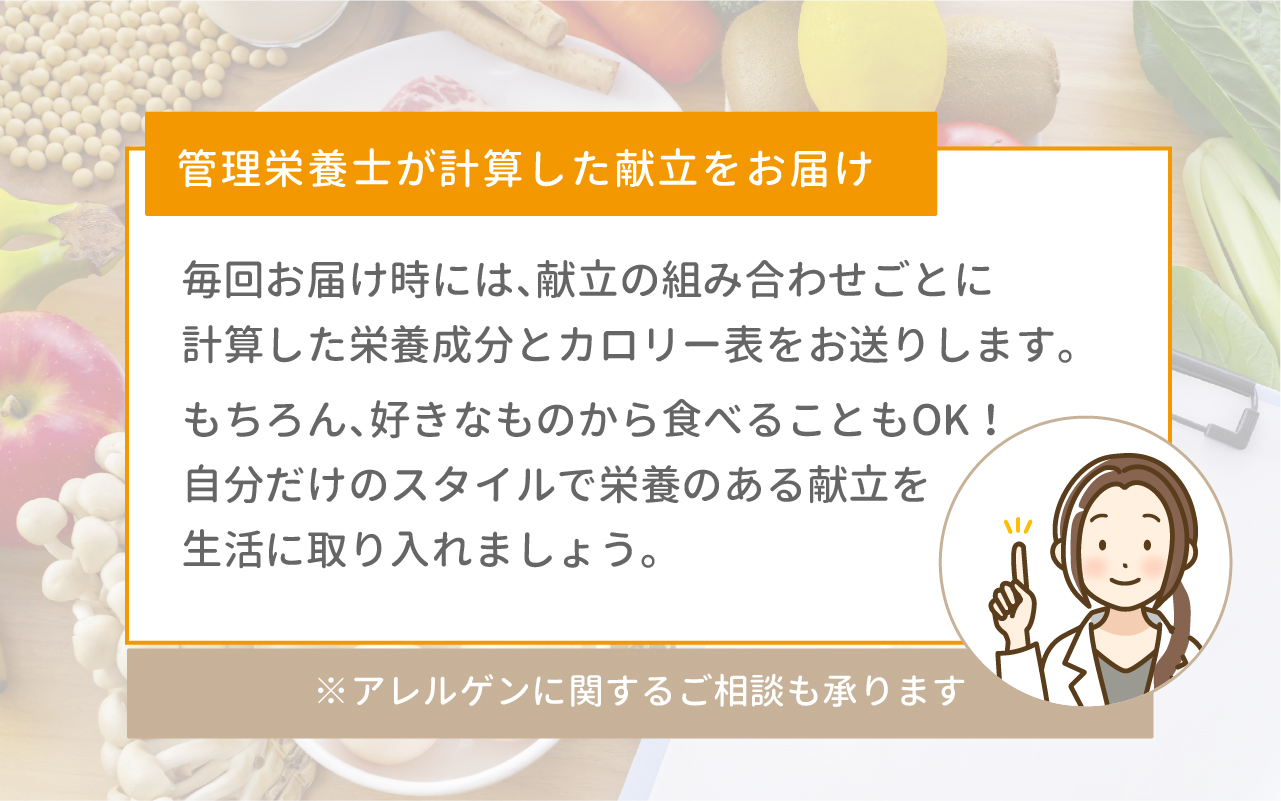 もし、他の食事との兼ね合いで全体的な栄養素やカロリーが気になる方は、当店スタッフまたは管理栄養士までご相談ください。