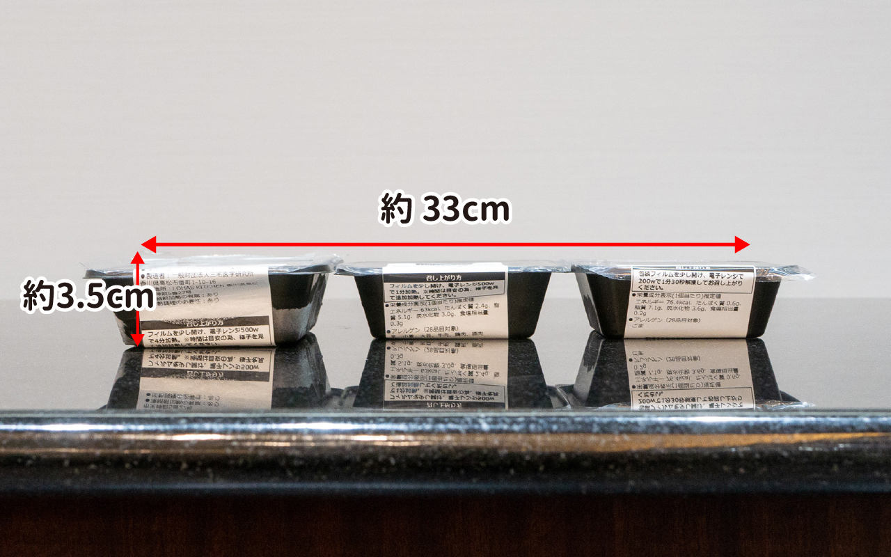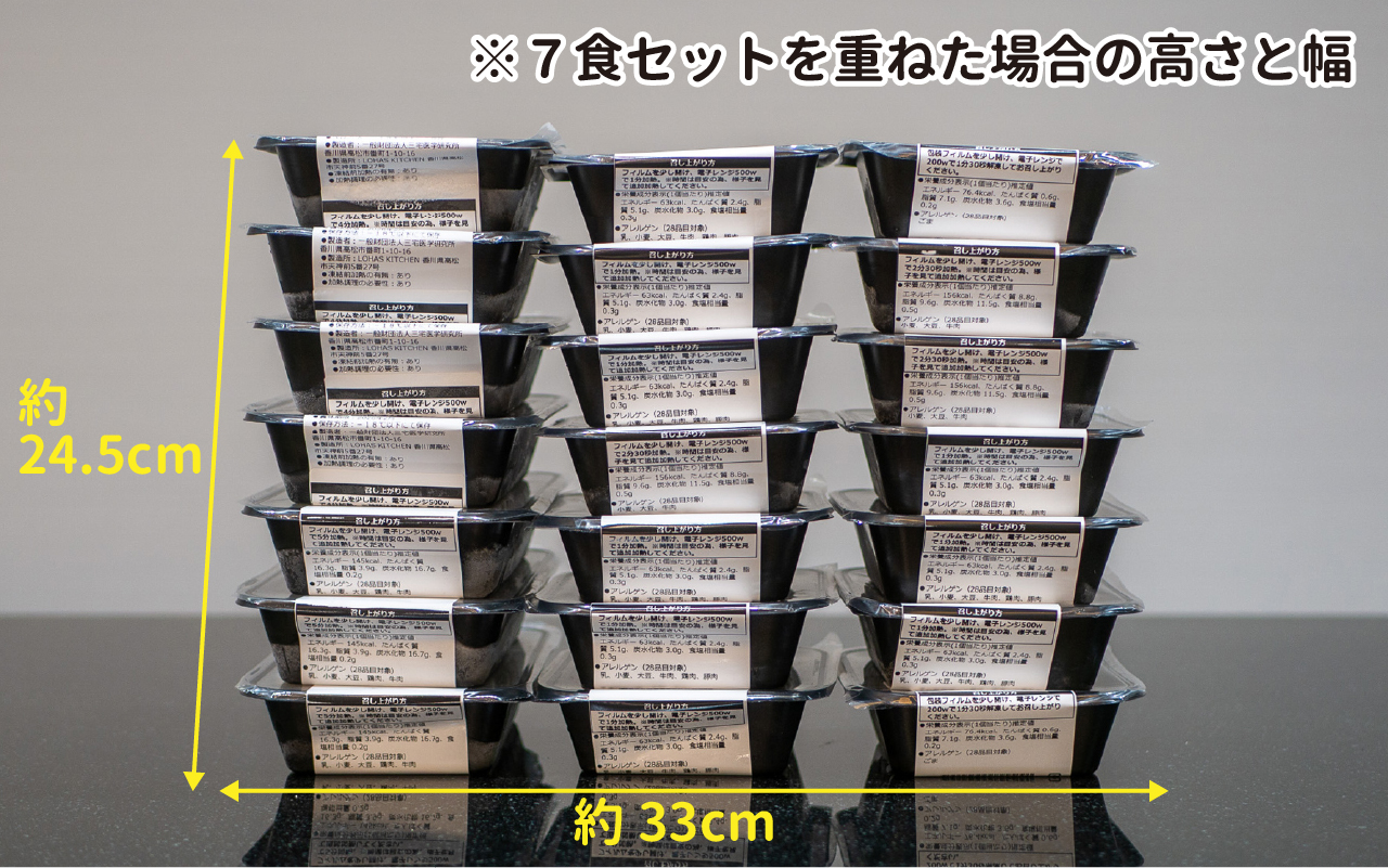 =横33cm・縦15cm×高さ24.5cm(1食セット×7倍の高さ)